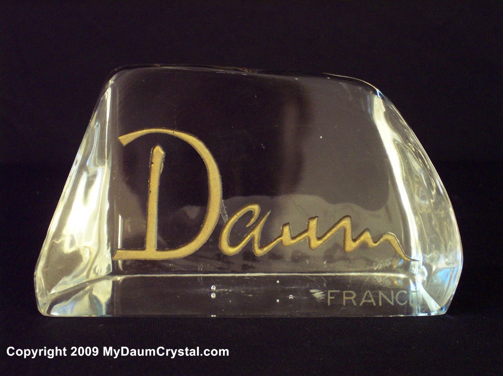 This is a 2nd indented gold crystal Daum Dealer sign, which is